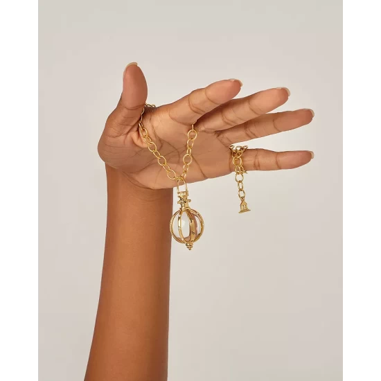- Dazzling round crystal amulet with sparkling diamond highlights