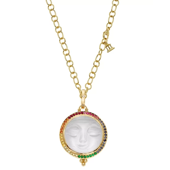 Best Pirce ๐งจ Temple St. Clair 18K Yellow Gold Celestial Diamond & Rainbow Gemstones Moonface Pendant Multi/gold โจ