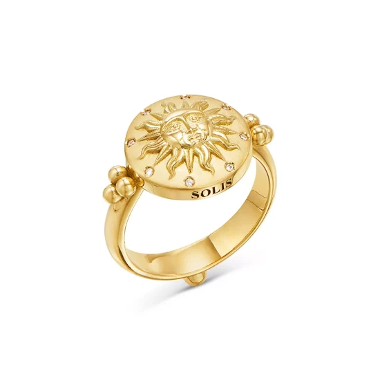 - An astronomical-inspired design with antique feel, depicting a shining sun amidst diamond details