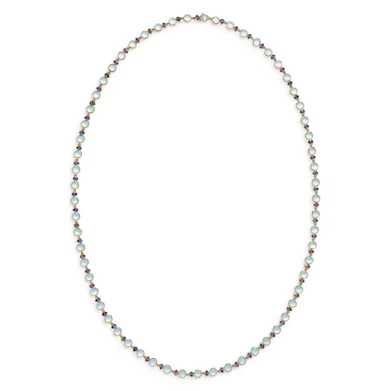 - A beautiful combination of alternating blue moonstone and tanzanite on a long length moon river necklace