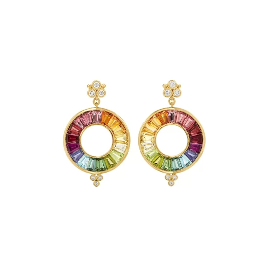 Wholesale ๐ Temple St. Clair 18K Yellow Gold High Color Wheel Halo Drop Earrings With Rainbow Gemstones & Diamonds Multi/gold ๐