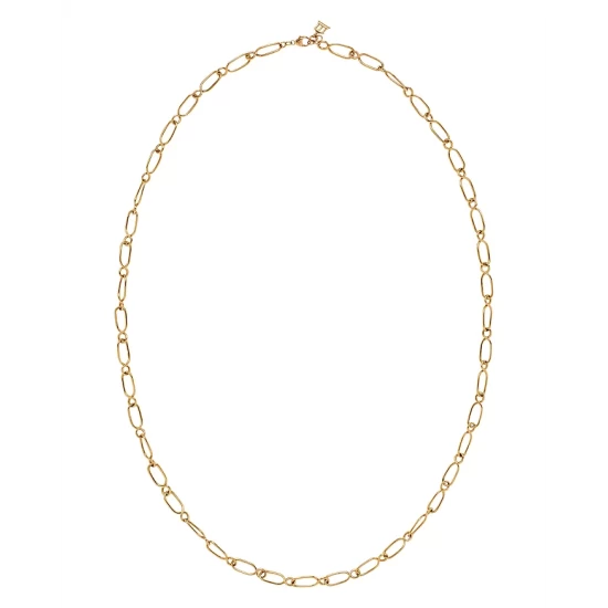 - A long, gold river chain necklace can be worn alone or with a pendant of your choice.