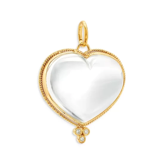 Discount ๐ Temple St. Clair 18K Yellow Gold Rock Crystal & Diamond Heart Pendant ๐